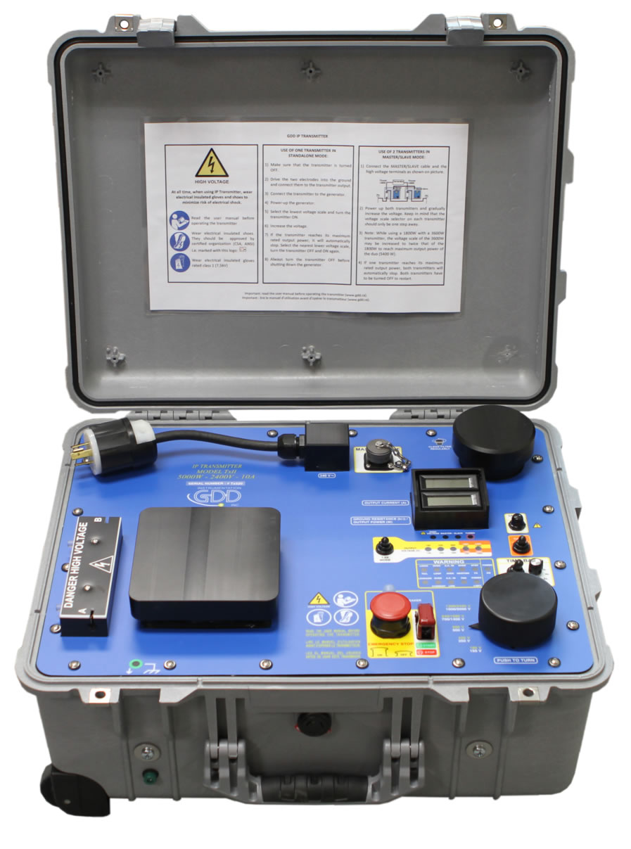 Reliable and robust, the GDD IP Transmitters (models Tx5 and Tx4) are used over the world for apparent resistivity and time-domain induced polarization (IP) surveys and drilling.